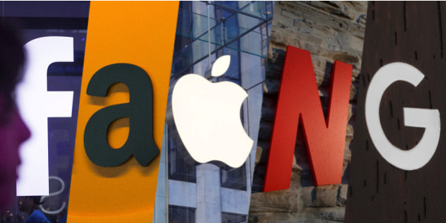 所谓“FAANG”——Facebook、苹果、亚马逊、流媒体视频服务提供商Netflix和谷歌母公司Alphabet——的五大科技巨头多数下跌,其中苹果跌0.64%,亚马逊跌0.35%,Alphabet跌0.30%,Facebook跌0.10%,但Netflix则上涨0.40%。